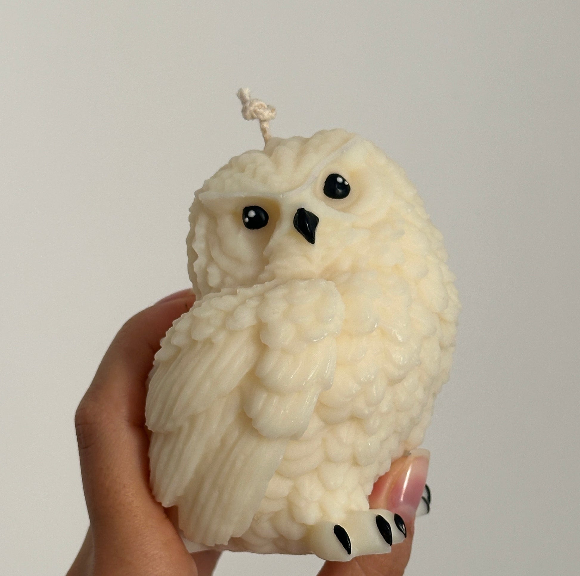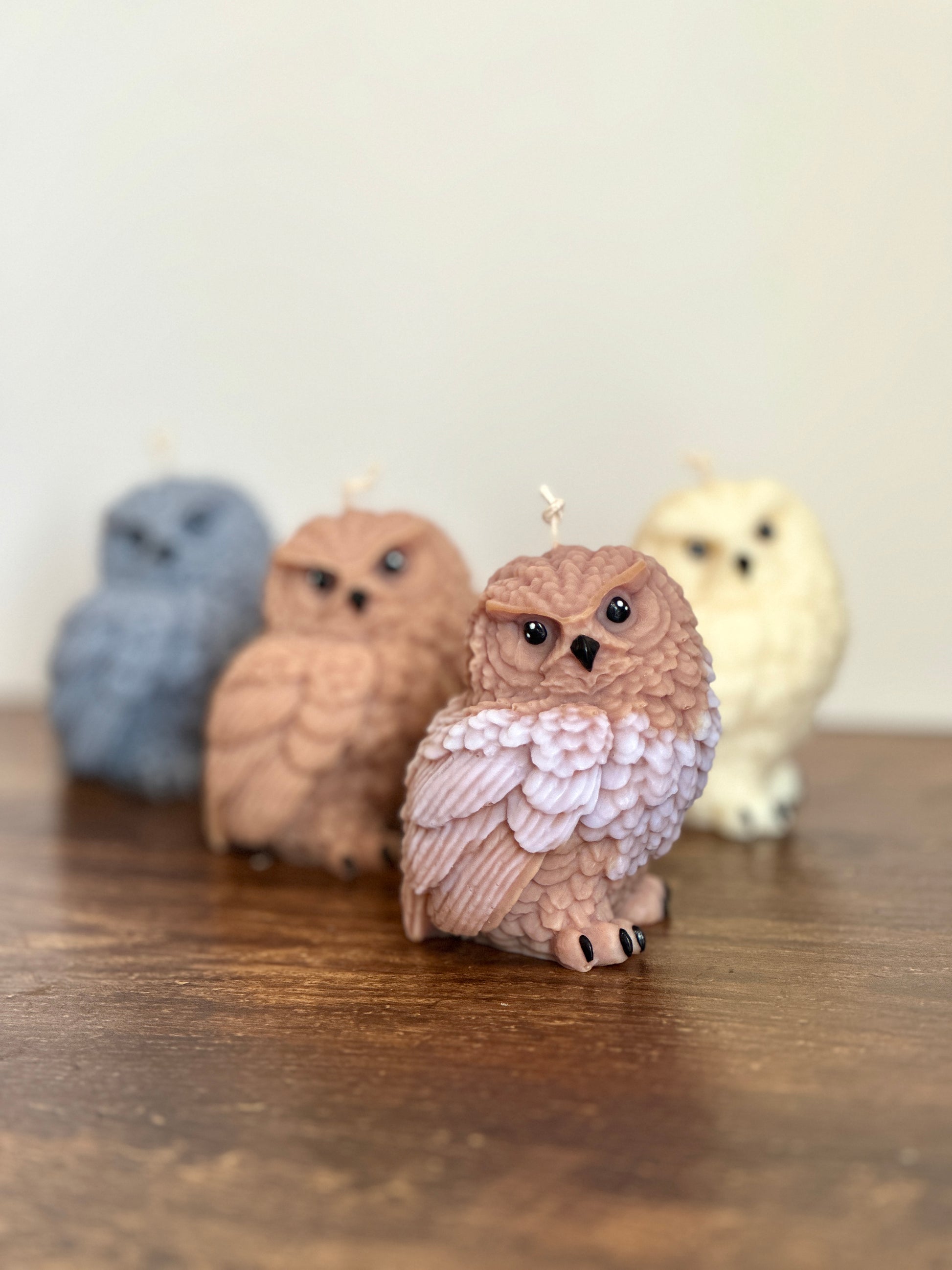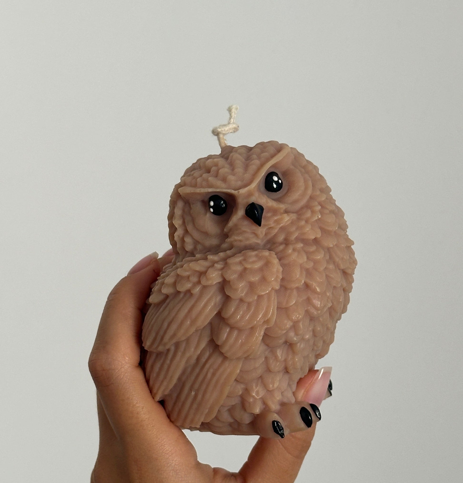 Apportez une touche de magie automnale et poétique à votre intérieur avec la Bougie Chouette, entièrement façonnée à la main.