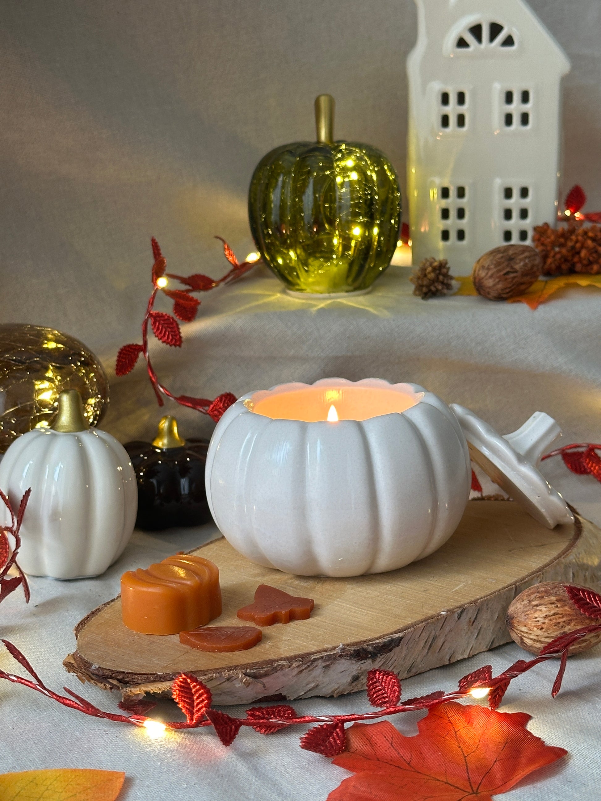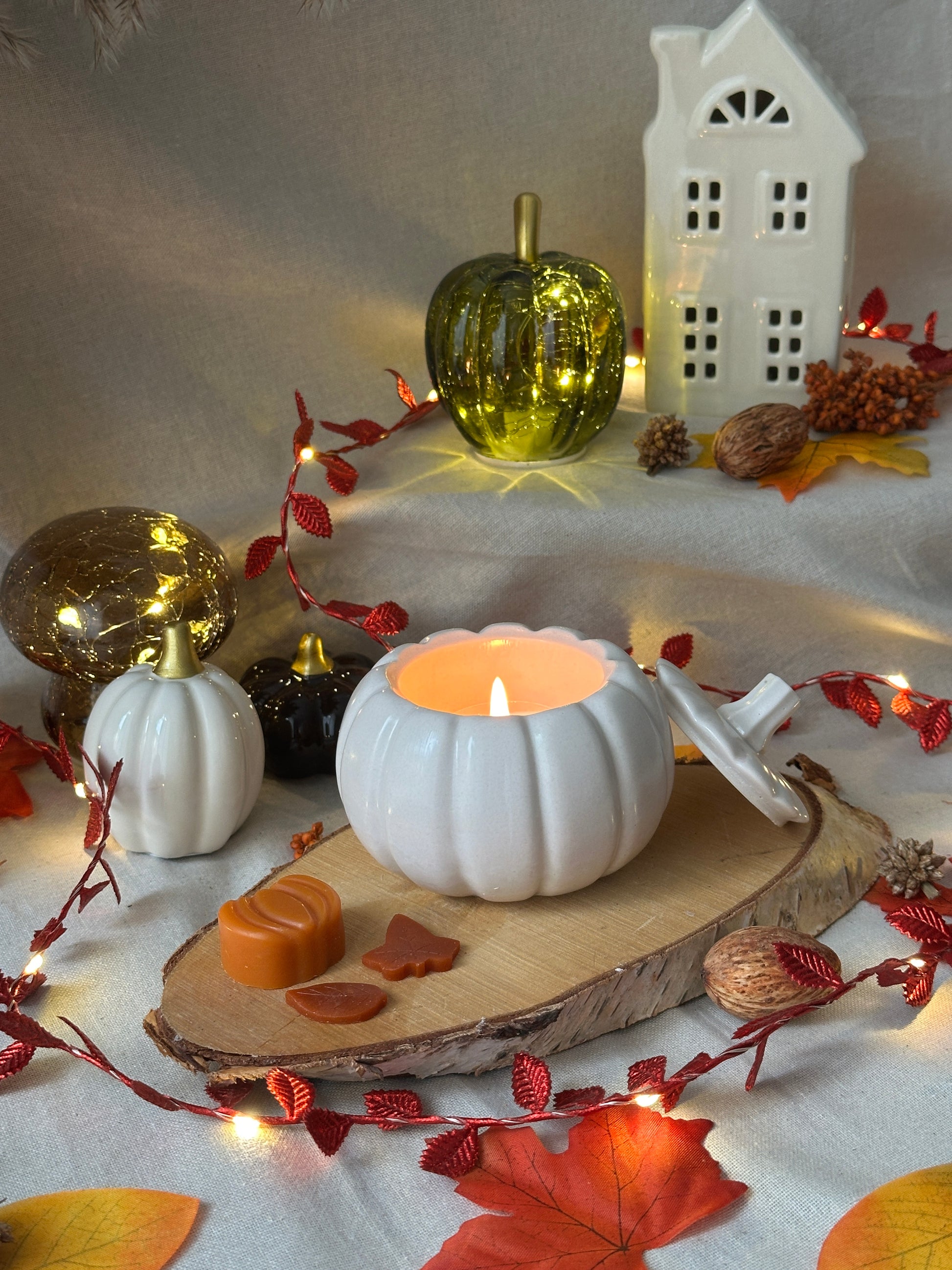 Son petit plus : Une fois la bougie consumée, conservez la citrouille en jesmonite comme un joli contenant décoratif ou pratique pour votre intérieur.
