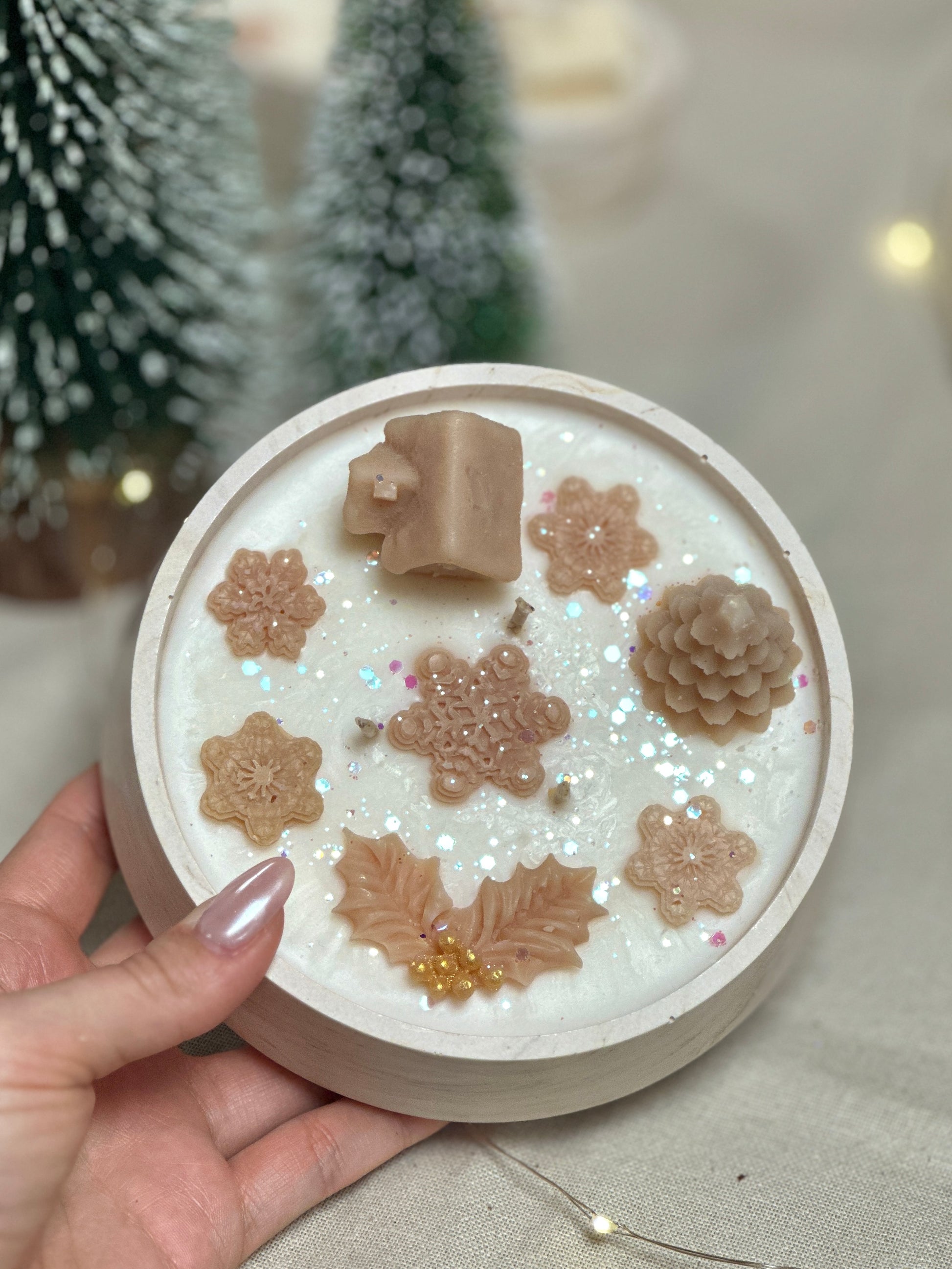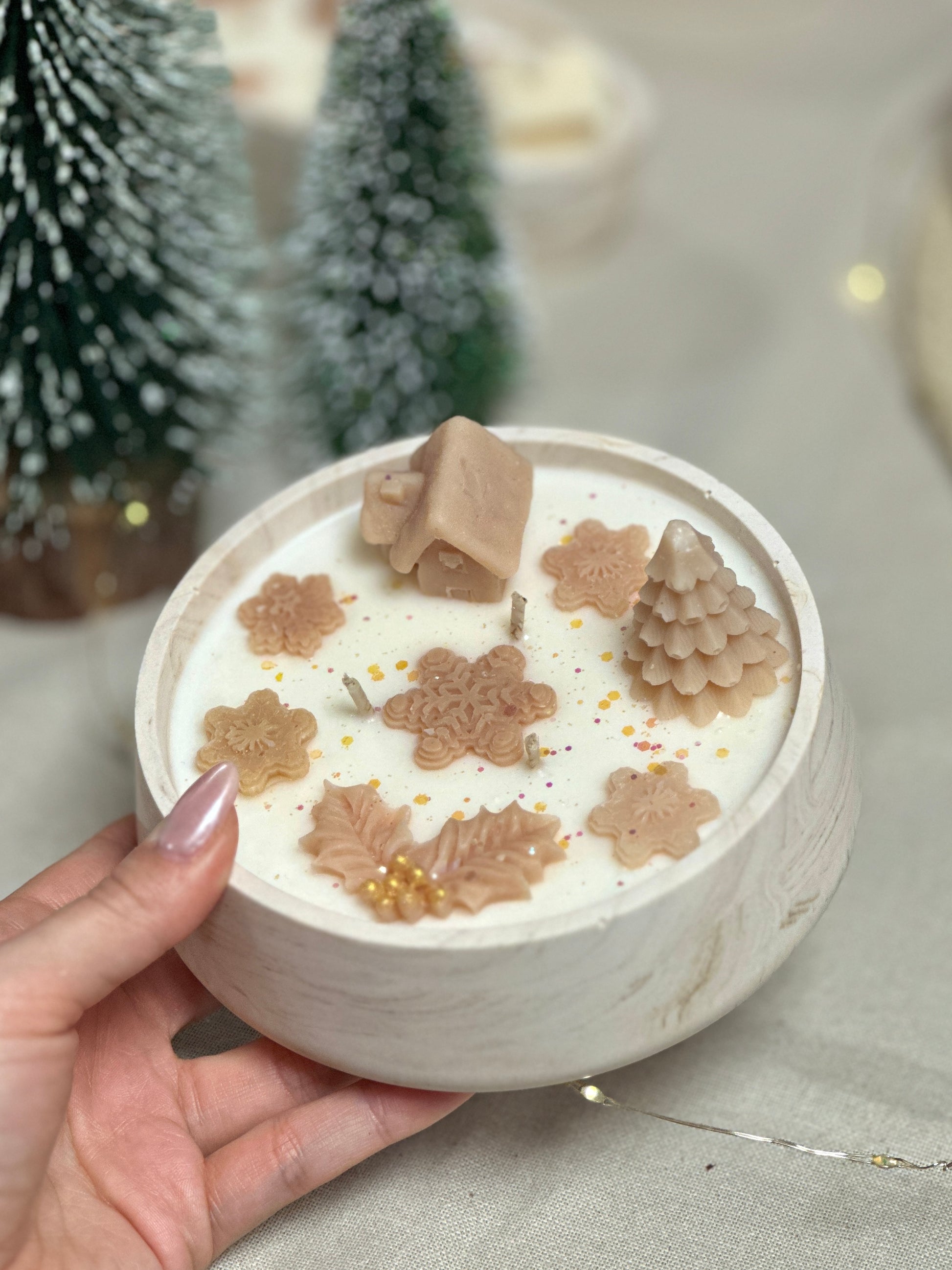 Laissez entrer la magie de Noël dans votre intérieur avec cette bougie artisanale, coulée à la main dans un récipient en jesmonite (lui aussi fait à la main). Chaque pot est décoré avec soin, pour devenir un véritable objet de décoration chaleureux et authentique.