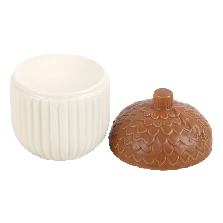 Comme un joyau de la forêt, ce petit brûleur en forme de fruit du chêne séduit par son design délicat et raffiné. Sa silhouette toute en rondeur évoque la douceur des promenades automnales et apporte une touche de charme naturel à vos instants parfumés.