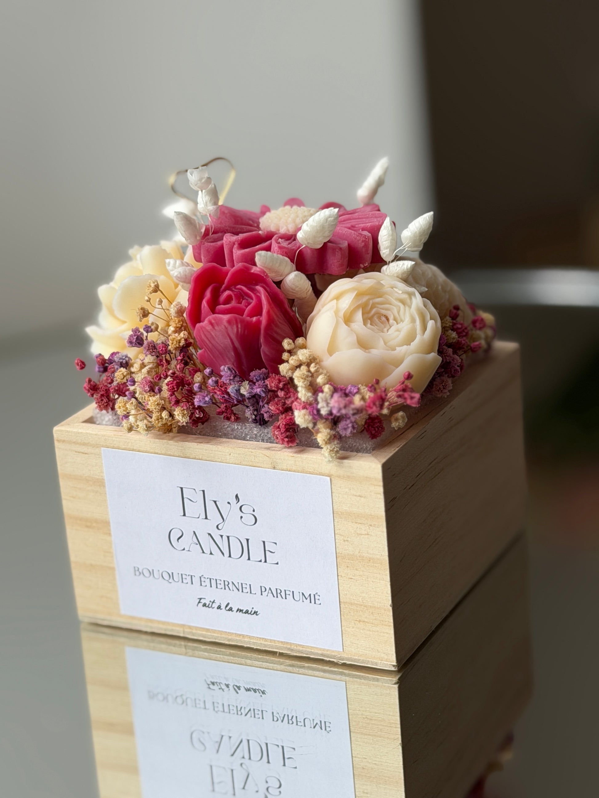 Ce bouquet ne se fane pas. Il reste intact, décoratif et élégant, comme le souvenir qu’il représente. - Deux utilisations possibles : En décoration, le bouquet parfume délicatement à froid et sublime un intérieur. En expérience parfumée, chaque fleur peut être utilisée individuellement comme fondant, à faire fondre dans un brûleur pour libérer son parfum.