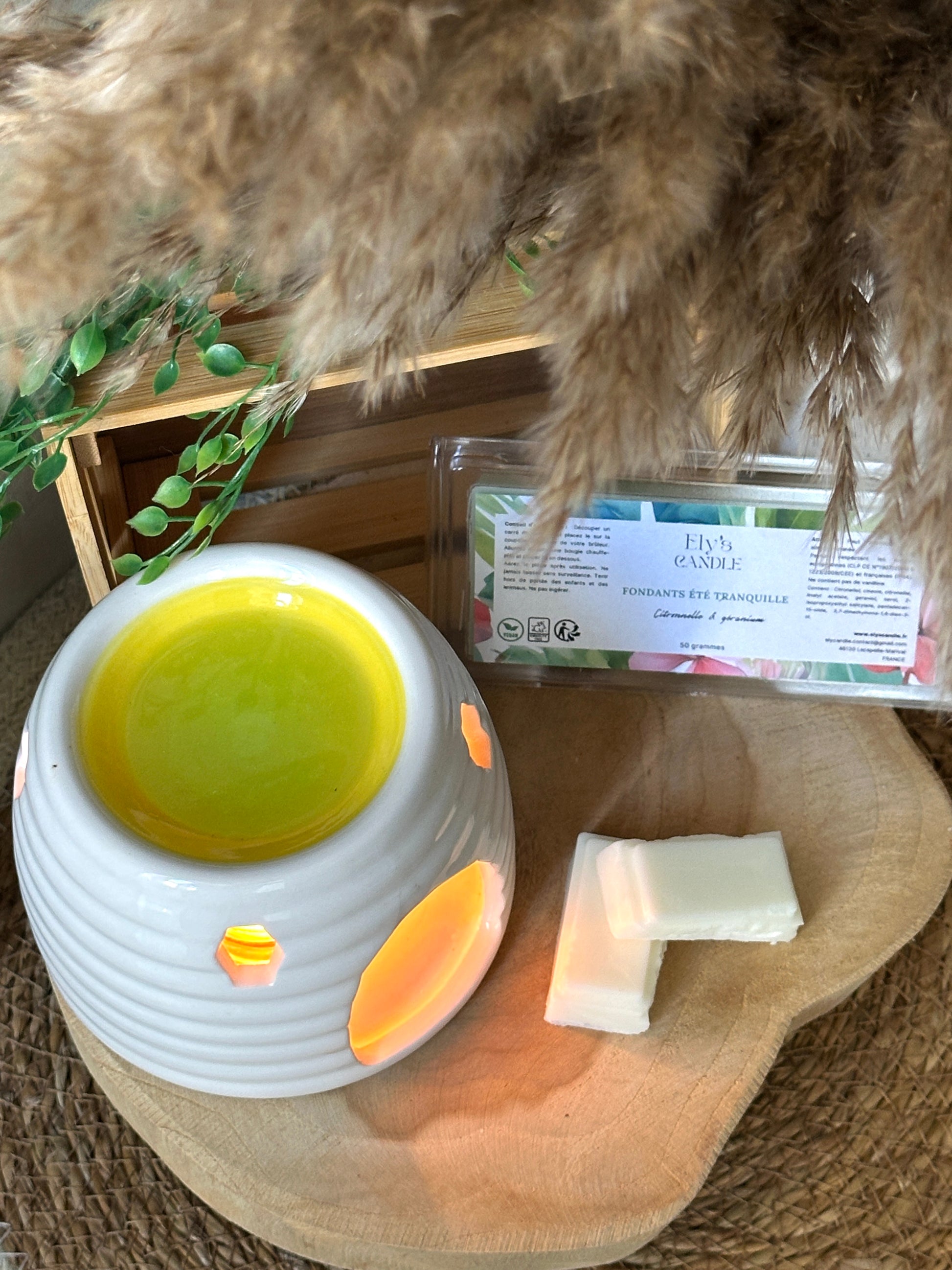 Les fondants parfumés Été Tranquille sont une manière simple et agréable de parfumer votre intérieur tout en profitant d’une ambiance estivale plus sereine. Leur parfum a été sélectionné avec soin pour évoquer les plantes traditionnellement utilisées pour créer un environnement moins apprécié des moustiques, le tout sans compromis sur le plaisir olfactif.