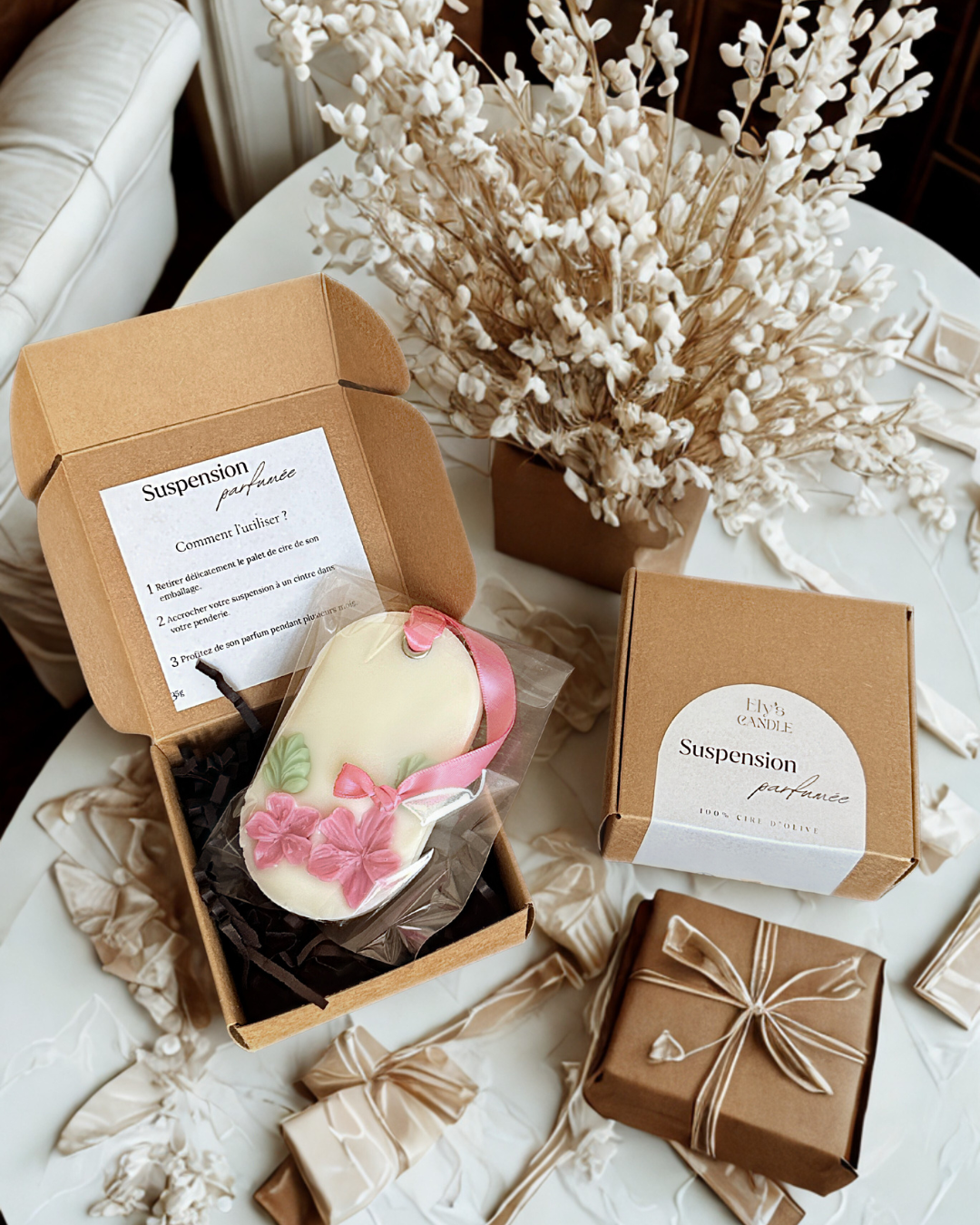 Apportez une touche de douceur et de poésie à votre intérieur avec nos suspensions parfumées artisanales, conçues pour parfumer délicatement vos espaces du quotidien.
