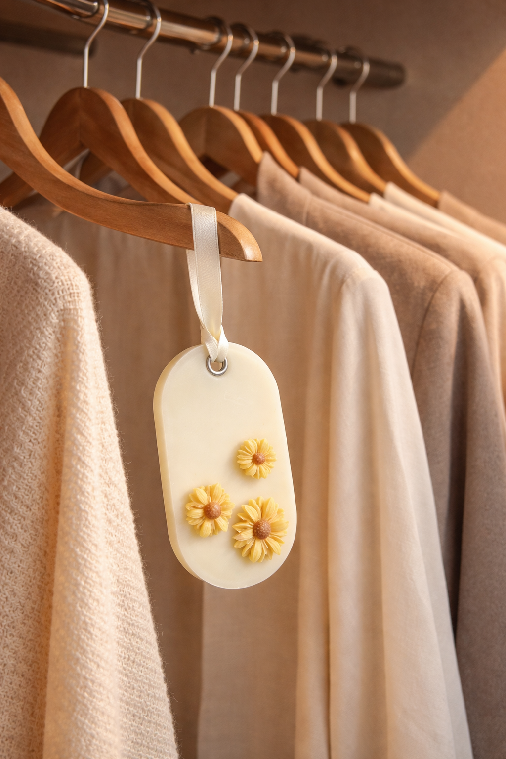 Accrochée dans une penderie, un dressing ou même derrière une porte, la suspension diffuse son parfum de manière continue, enveloppant vos vêtements d’une senteur élégante et réconfortante.